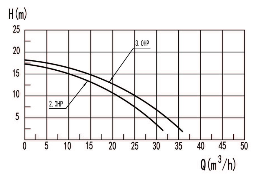 | Modelo | Voltaje | Potencia | Velocidad de giro (r/min) | Elevación máxima (m) | Flujo máximo (m³/h) | Clase de aislamiento | Grado de protección | Peso bruto (kg) | Certificación | |